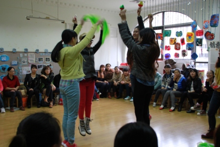 11月2日下午,在我园承办的2013年农村幼儿园教师送教到县暨绵阳市幼儿骨干教师培训的第六天,我园小班组教师刘懿、梁海霞开展了《音乐游戏活动》的现场互动式培训。