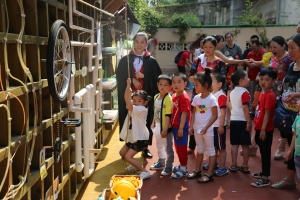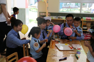 活动中,绵阳市教体局基教科科长李长春、副科长杨萍代表局领导给孩子们送上了“六一”的节日礼物和祝福,观看了“cosplay秀”、社团成果展和游戏大畅游,对我园的办学理念和活动开展给予了充分肯定。