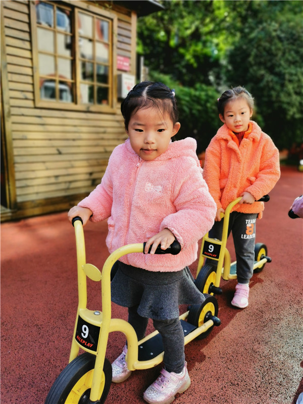 午后的阳光里,骑着小车,和朋友们在一起,最开心啦!