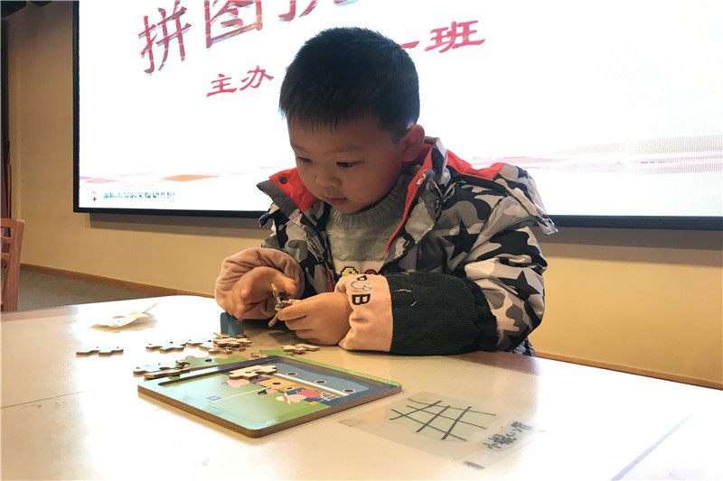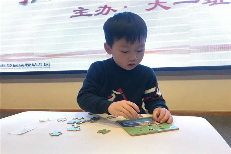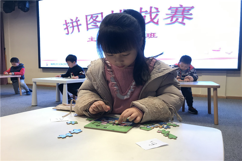 小选手们认真地观察、思考着拼图的方案,时而紧锁眉头、时而抿嘴微笑,有的手忙脚乱,有的镇定自若,场上的比赛非常激烈……“看,我拼好啦!”当散乱的图片在自己手里拼出了一幅美丽的图画那一刻,激动的心情无法掩藏。