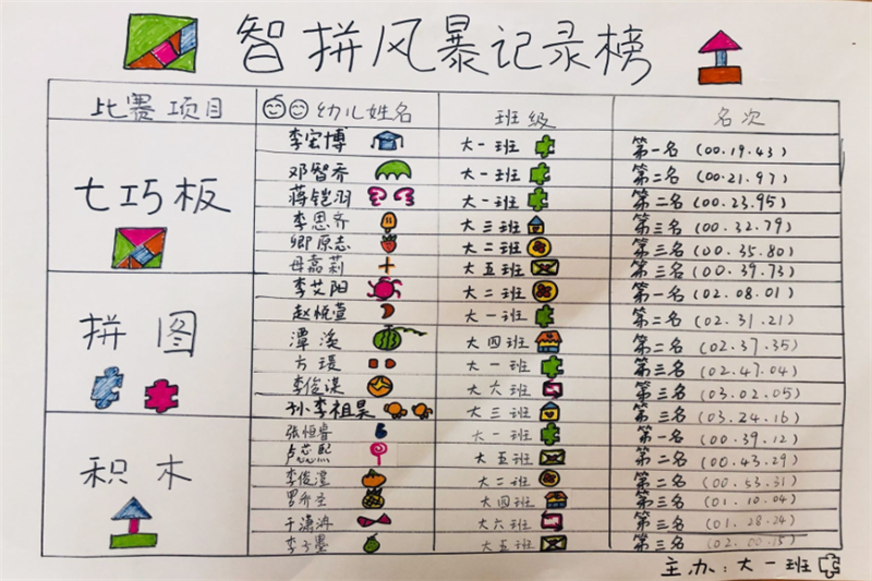 宣传似乎起到了作用,越来越多的小朋友对“拼一拼”产生了兴趣,他们轮番开战,最终通过班级PK赛推选出了参加年级组决赛的小朋友。