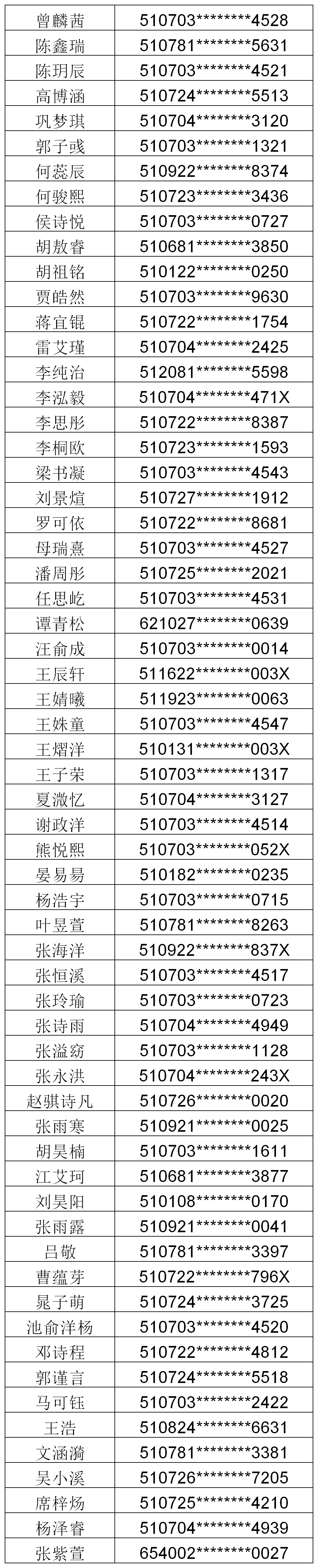 根据绵阳市教育和体育局、科创园区管委会招生工作安排部署,经网上申请、现场资格审核及电脑派位,现将2020秋季招生小班、中班、大班录取名单公示如下,后期幼儿园将通知家长办理入园手续,请家长关注绵阳市花园实验幼儿园官方网站和微信公众号,并保持电话畅通。