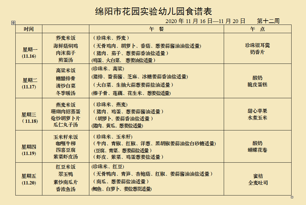 第十二周食谱