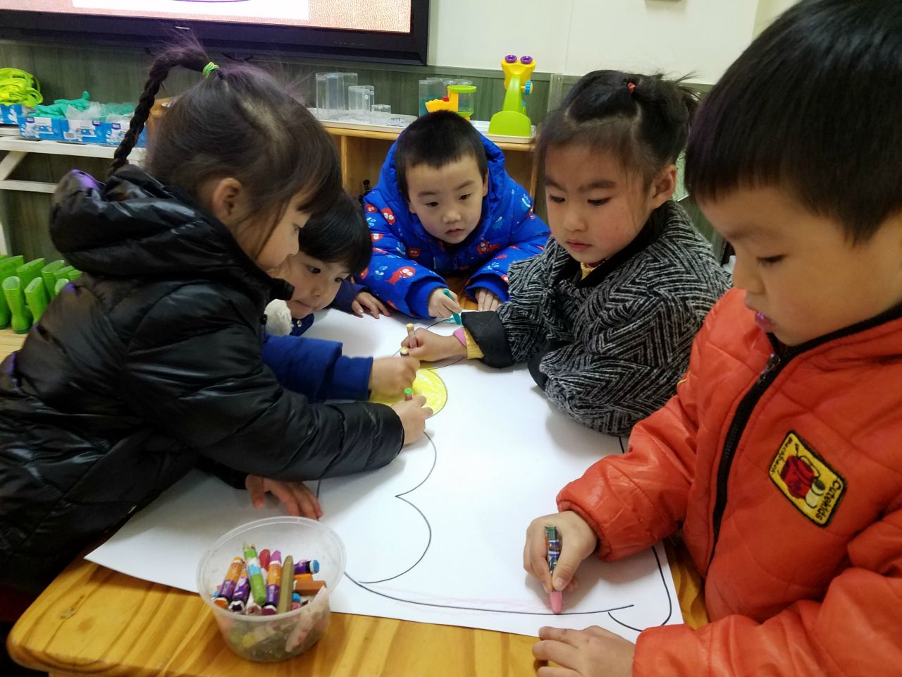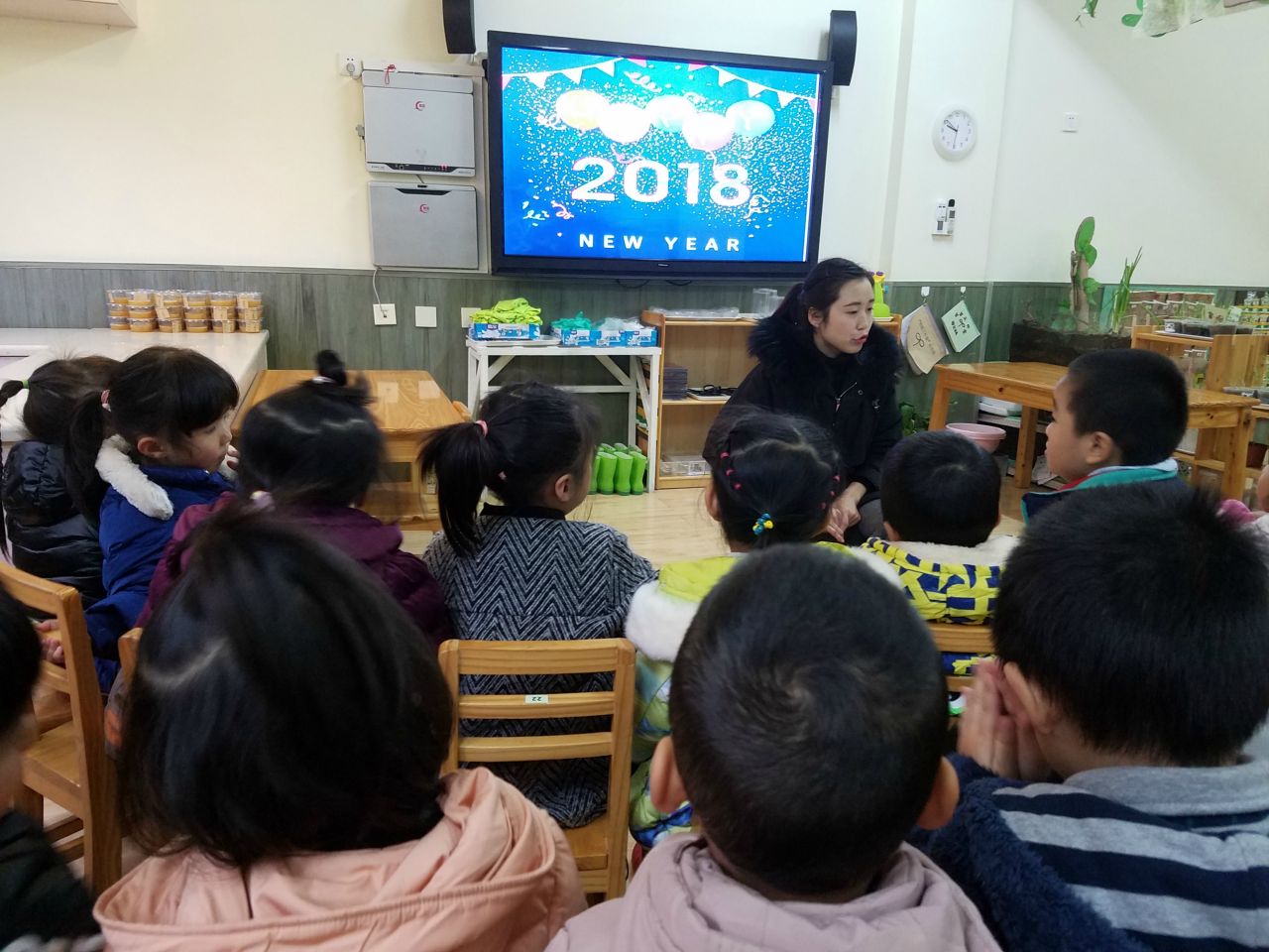 新的一年,小朋友又长大一岁了,他们一起贴窗花、贴对联、