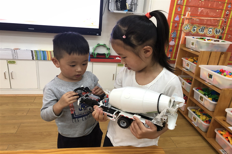消防车、警车、油罐车、……萌娃们争先恐后的说出自己喜欢的小车。消防车上有可以升降的云梯,它载着消防员叔叔“飞到”“高房子”里救人;警车发出“呜笛呜笛”的声音,请快速避让。什么?消防车有翅膀,堵车的时候直接飞起来去救人;警车还会变形,遇到坏人就成了超级汽车人保护我们。在一次次热火朝天的“争辩”中,萌娃们知道了更多的小车种类;在一次次趣味体验中,萌娃们知道小车的功能;在一次次天马行空的想象里,萌娃们的奇思妙想不断的冒出来,谁敢说这些想法不会变成现实呢?