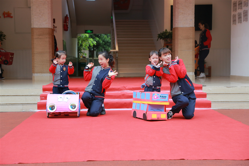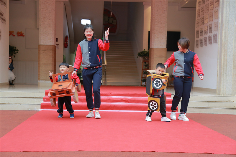 一场亲子自制小车秀正在进行中,爸爸妈妈和萌娃们齐上阵。废旧纸箱刷上亮丽的颜料,再用贴纸和光盘装饰一下。老爷车、变形金刚、爱心小车……一个个神气的自制小车就做好啦。“轰隆隆……”自制小车“开”进了幼儿园,闪耀登场。萌娃和爸爸妈妈带着小车一起走秀、一起表演。让我们一起变身超级汽车人吧!最后,汽车小主人把小车留在了教室里,给朋友们演示汽车玩儿法。大家一起分享汽车,一起“解锁”不同小车的玩儿法。