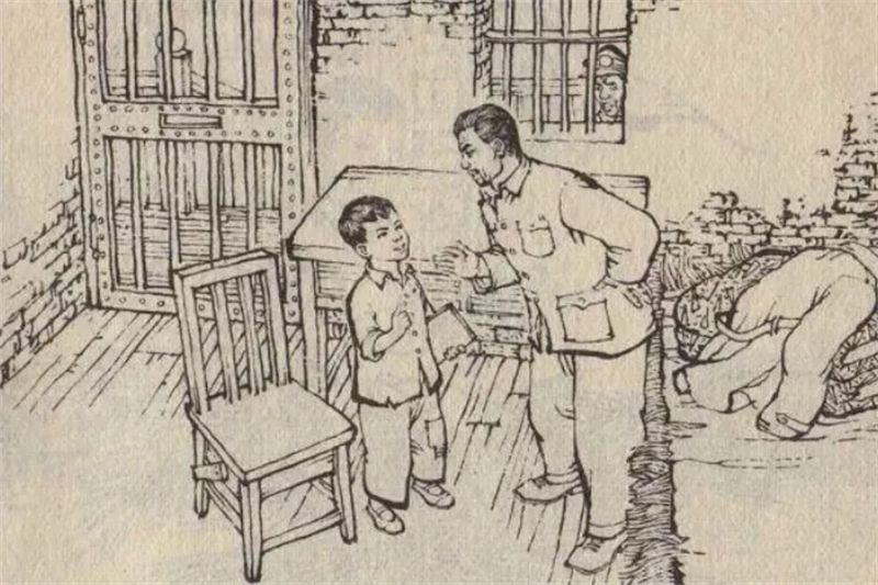“小萝卜头”六岁那年,爸爸要求特务让他上学。特务们怕他把监狱里非人的生活说出去,硬是不让他上学。后来经过难友们几次斗争,特务们才勉强同意让他上学,由一位也在狱中叫黄显声的伯伯教他读书。